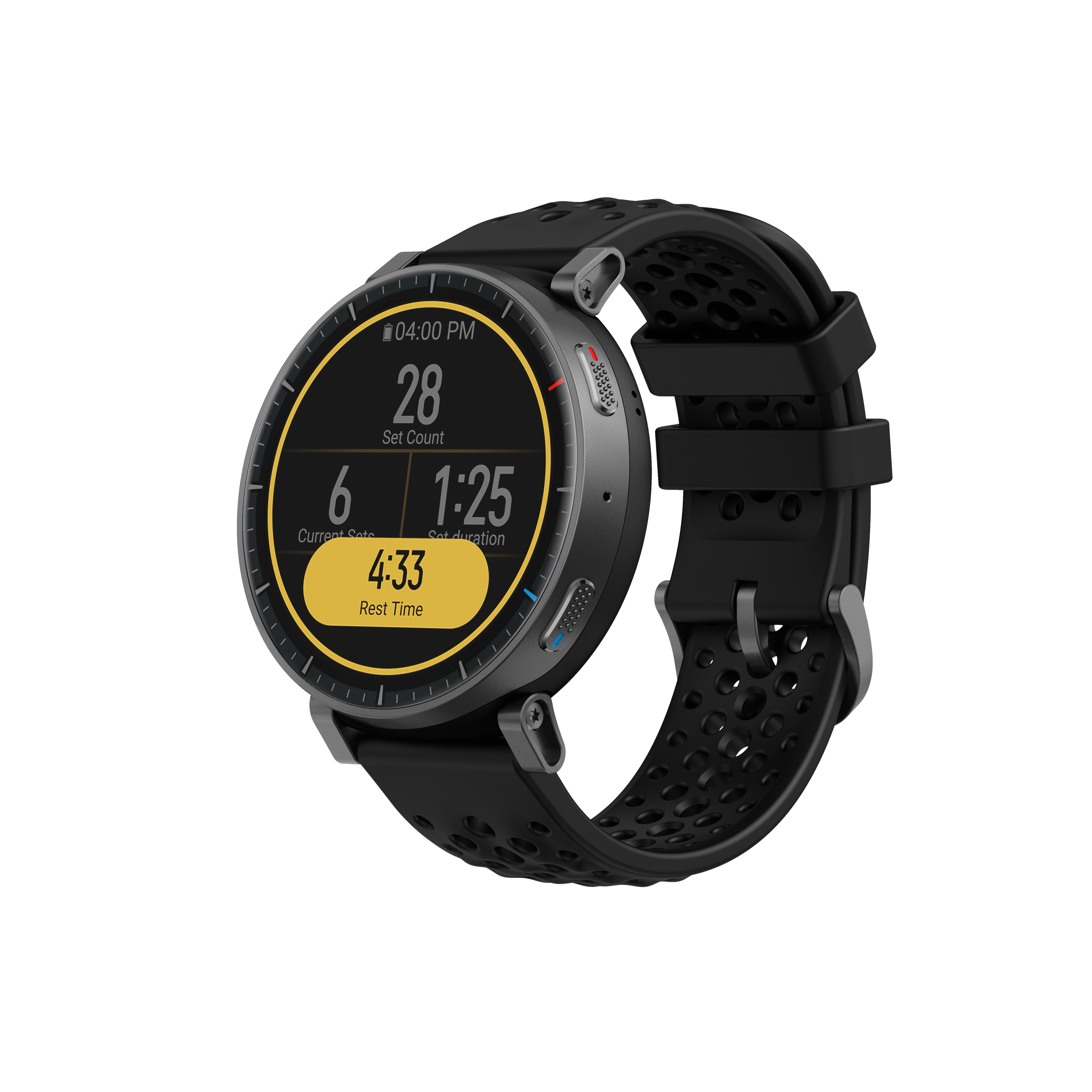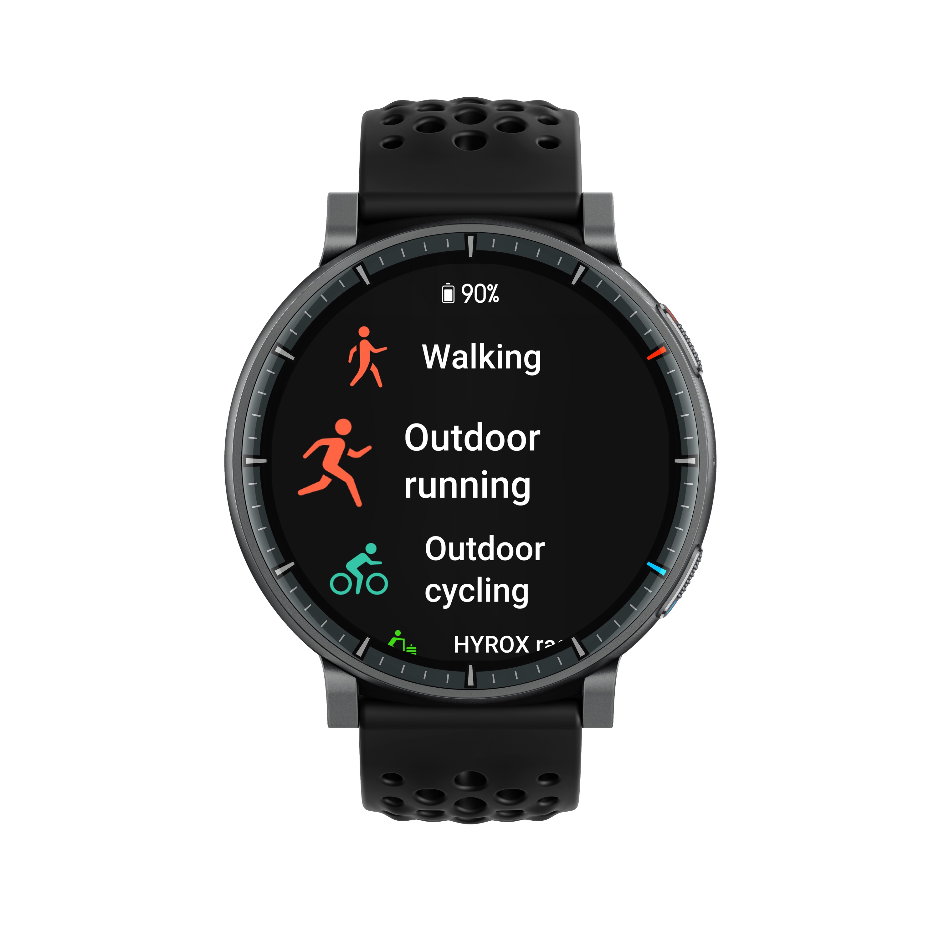 Zegarek samodzielnie rozpoznaje maksymalne tętno, ustawia odpowiednie strefy wysiłku i ostrzega, gdy intensywność treningu staje się zbyt wysoka. Duży, 1,5-calowy ekran AMOLED z jasnością sięgającą 3000 nitów automatycznie dostosowuje się do warunków oświetleniowych, zapewniając dobrą czytelność zarówno w pełnym słońcu, jak i w słabszym świetle.