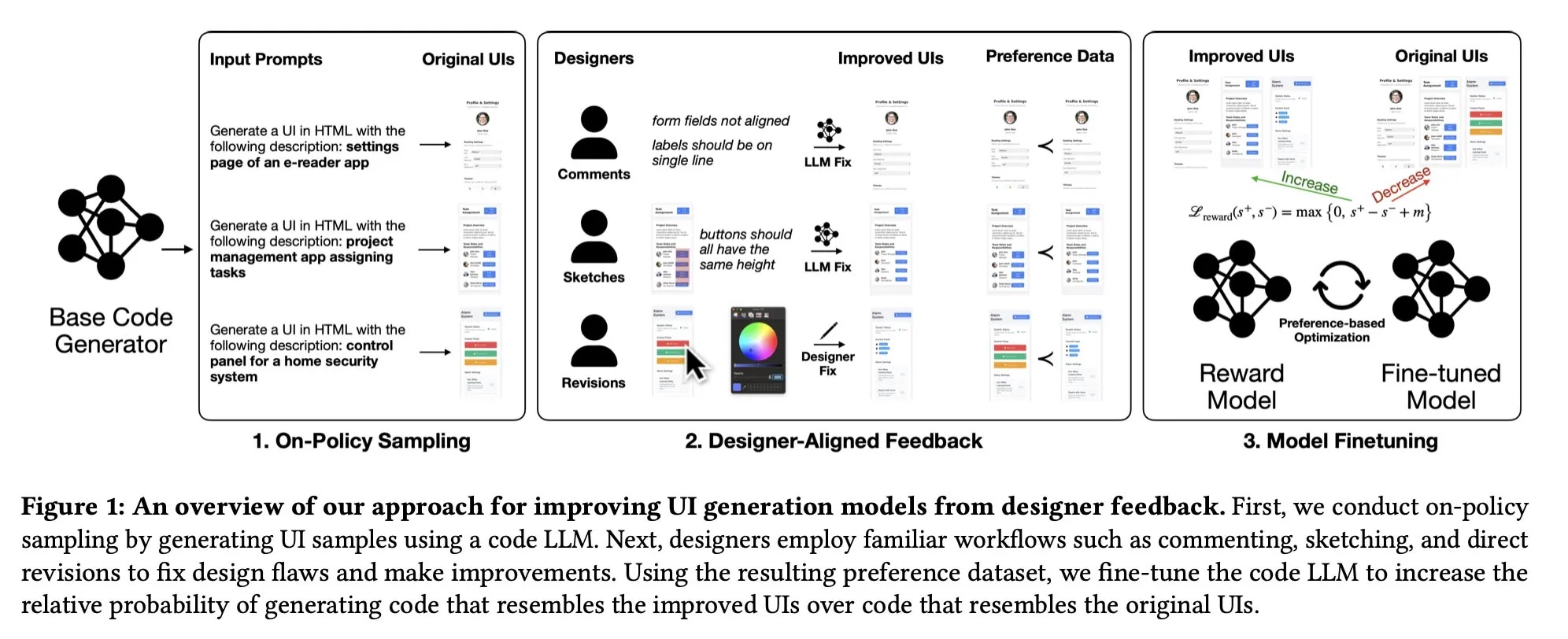 Tradycyjne metody RLHF (Reinforcement Learning from Human Feedback) nie są wystarczające do tworzenia dobrze zaprojektowanych interfejsów. Apple wprowadziło feedback designerów w formie komentarzy, szkiców i bezpośrednich edycji UI, który następnie służył do trenowania modelu nagrody.