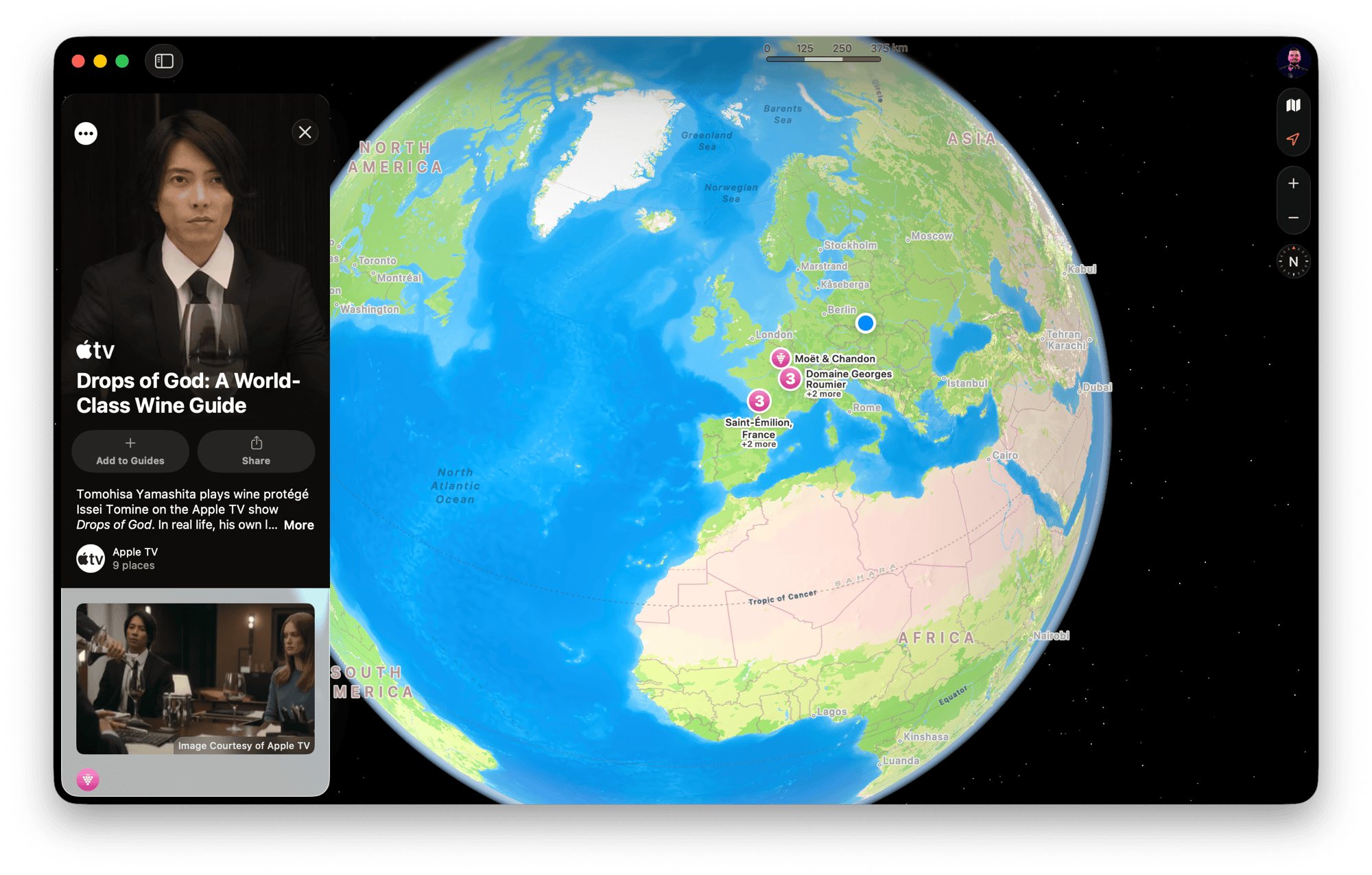 Apple Maps zyskało nowy przewodnik „Drops of God: A World-Class Wine Guide”, stworzony na potrzeby promocji serialu Apple TV „Drops of God”. Kurator, aktor Tomohisa Yamashita, dzieli się swoimi ulubionymi winnicami w Europie i Kalifornii, wraz z informacjami o godzinach otwarcia, zdjęciami i rekomendacjami dla fanów.