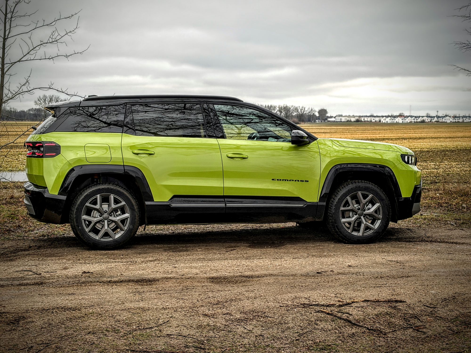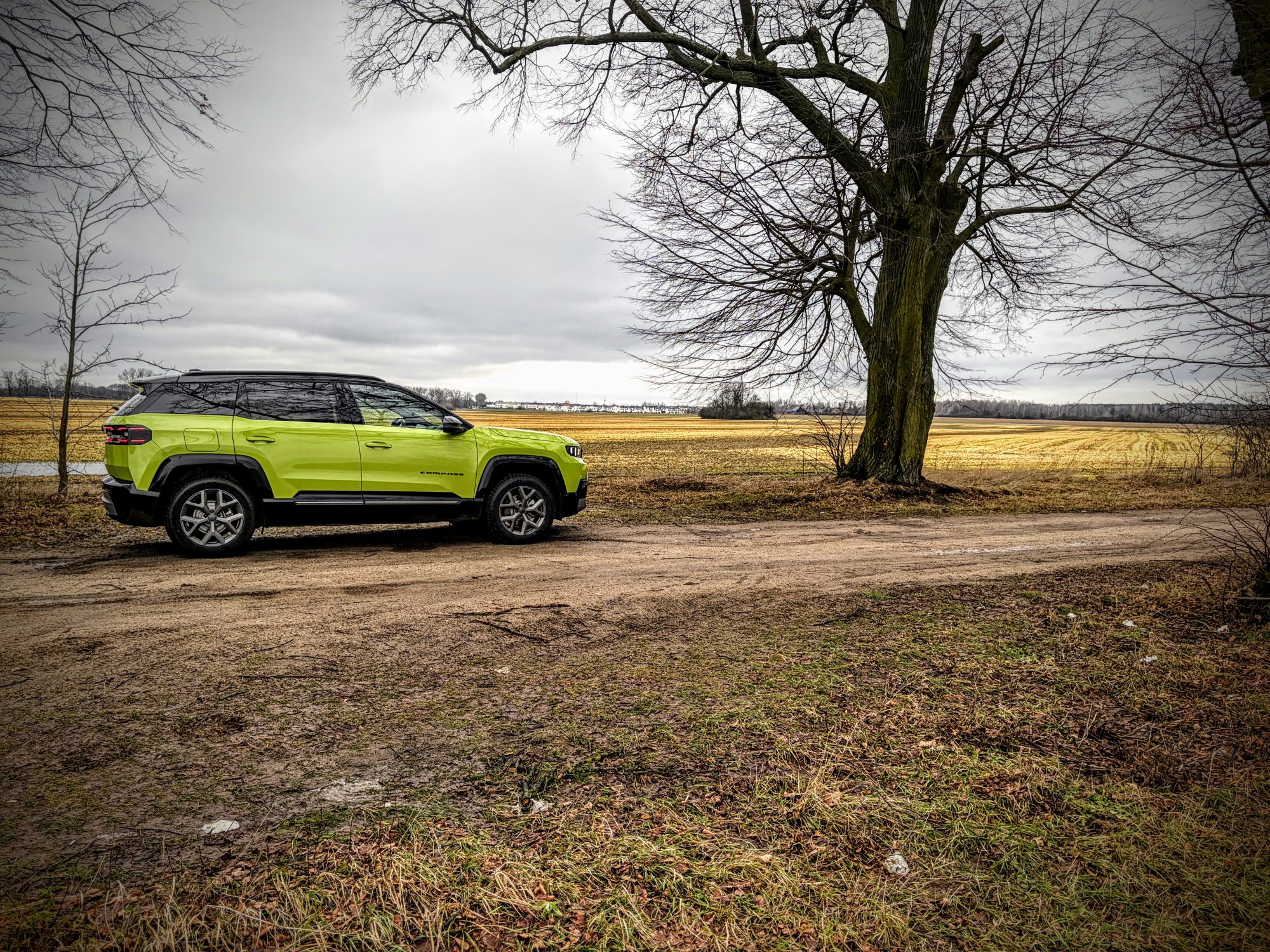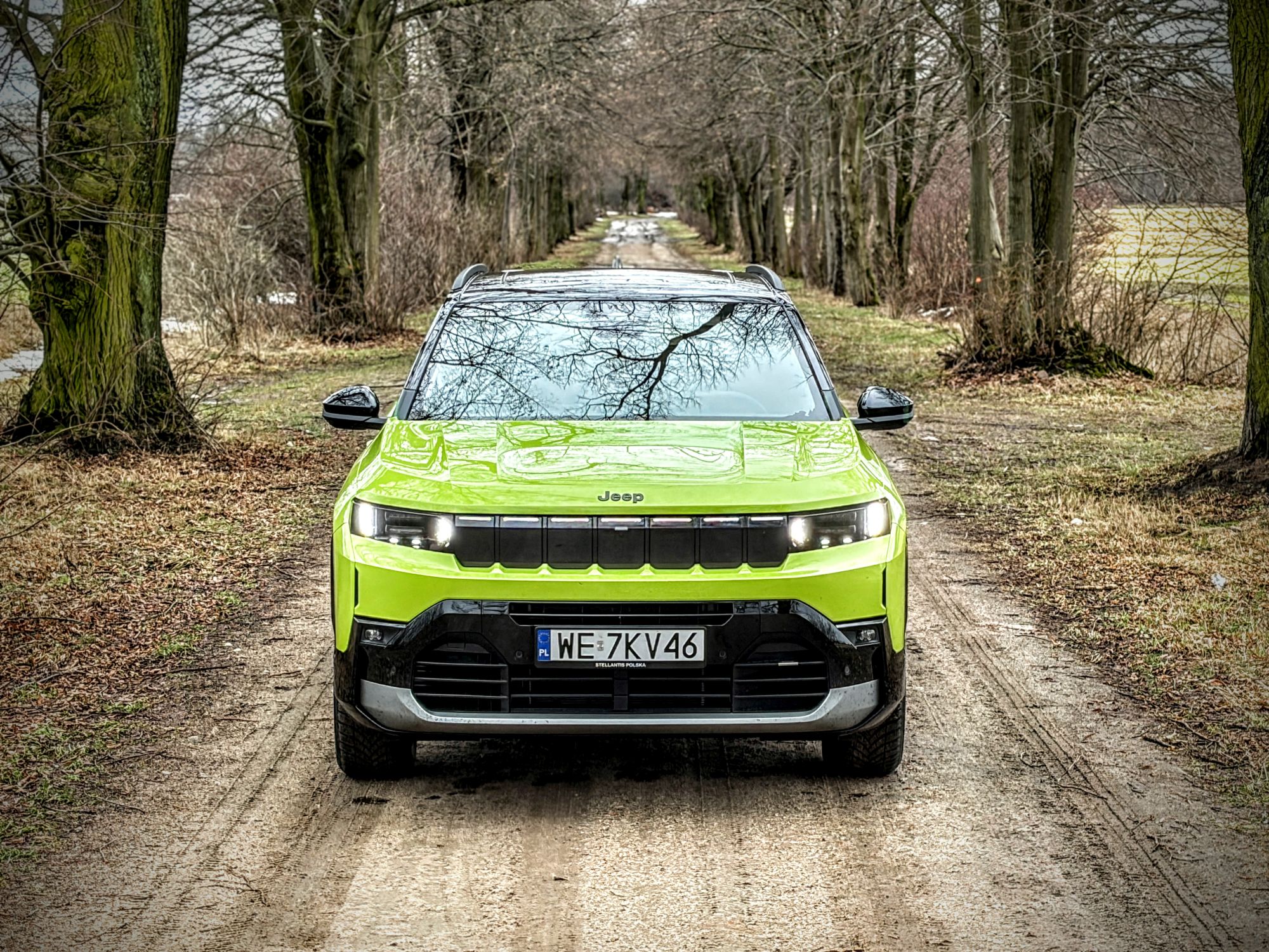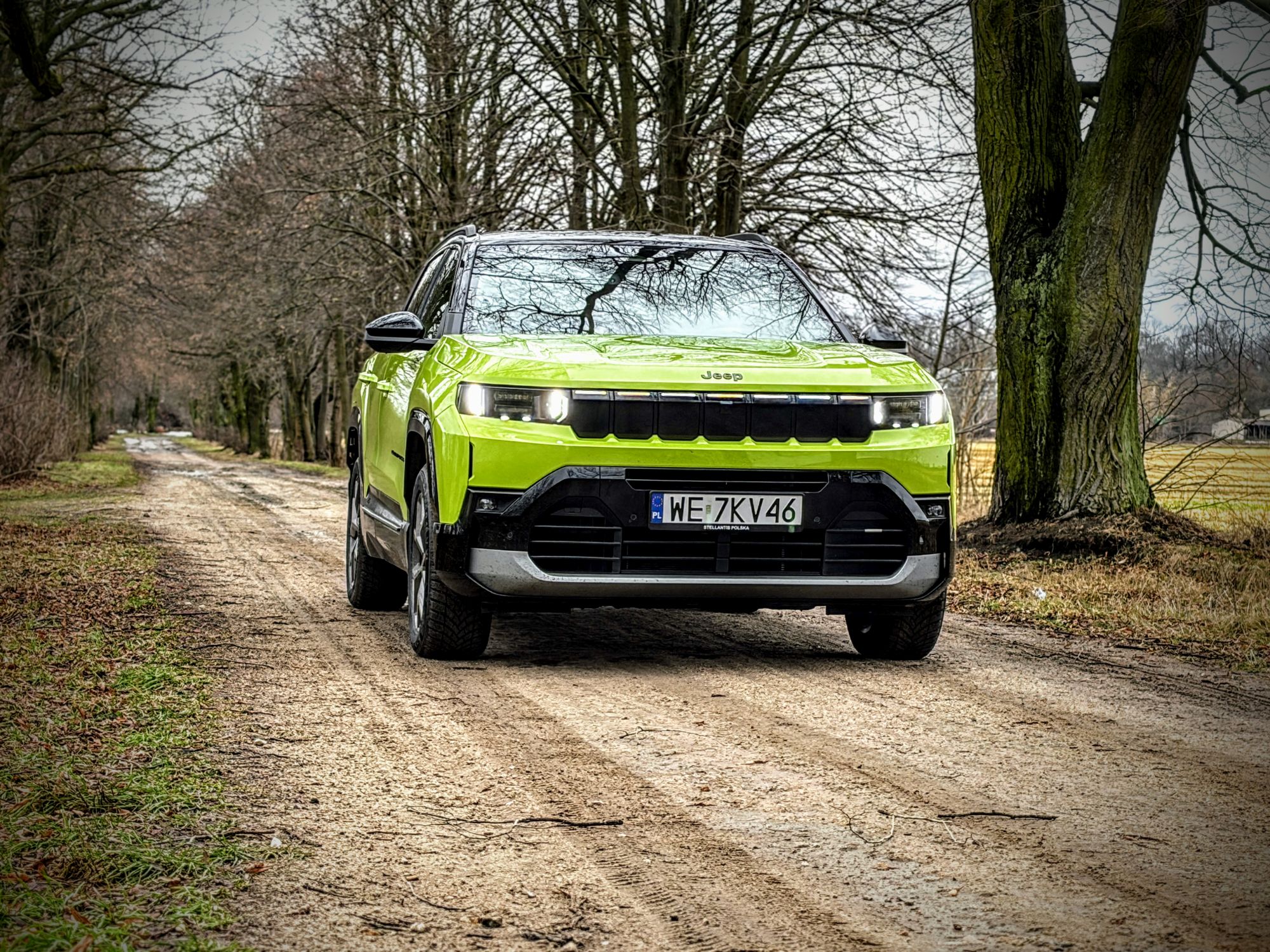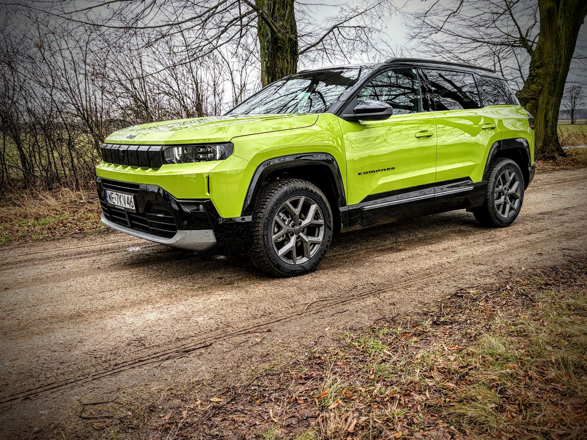 Trasa powrotna (wersja BEV 213 KM, bateria 74 kWh): wariant w pełni elektryczny z napędem na przednią oś. Komunikaty prasowe obiecują tu zasięg sięgający 500 km, ale rzeczywistość drogowa szybko weryfikuje laboratoryjne pomiary. Nasz testowy wynik zużycia energii to wysokie 28 kWh/100 km, choć tu od razu należy zaznaczyć, że w powrotnej drodze korzystałem głównie z tras szybkiego ruchu, a to zawsze jest wyzwanie dla zużycia prądu. Przy baterii o pojemności 74 kWh łatwo policzyć, że realny zasięg w takich warunkach będzie oscylował wokół 260 kilometrów. Compass w tej wersji okazuje się niestety dość prądożerny. Temperatura powietrza w trakcie dnia testowego oscylowała wokół 4°C, ale muszę zaznaczyć, że przez większość trasy biegnącej głównie w kierunku północnym wprost na maskę dmuchał mi frontalny wiatr o prędkości ok. 30 km/h, co niestety, podniosło zauważalnie zużycie.